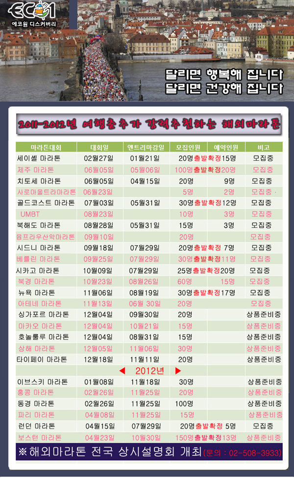 ¡Ú 2011~2012³â ÇØ¿Ü À¯¸í¸¶¶óÅæ ´ëȸÀÏÁ¤ ¾È³» ¡Ú